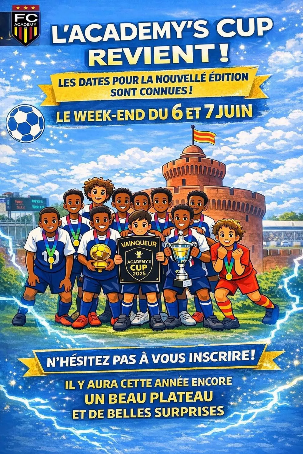 La Football Catalane Academy 66 ( Pyrénées orientales 66) a le plaisir de vous annoncer l’ouverture des inscriptions pour l’ACADEMY’S CUP 2026 qui se déroulera le 6 et 7 Juin.