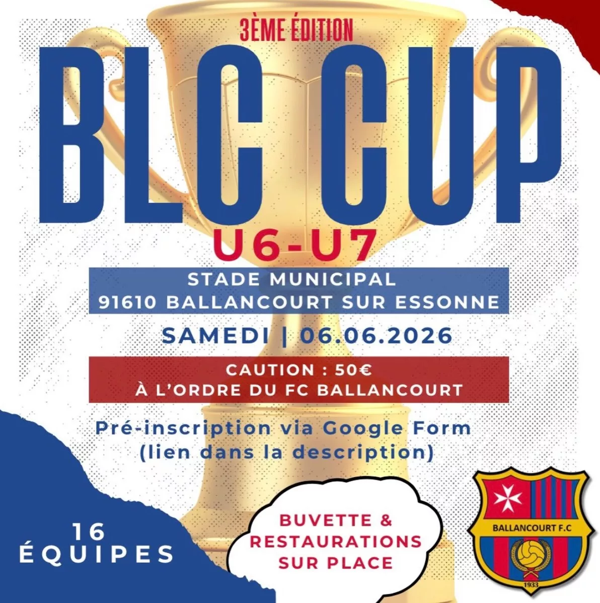 Le FC Ballancourt est heureux de vous inviter à la BLC CUP 2026 pour deux week-ends 100 % football, convivialité et plaisir