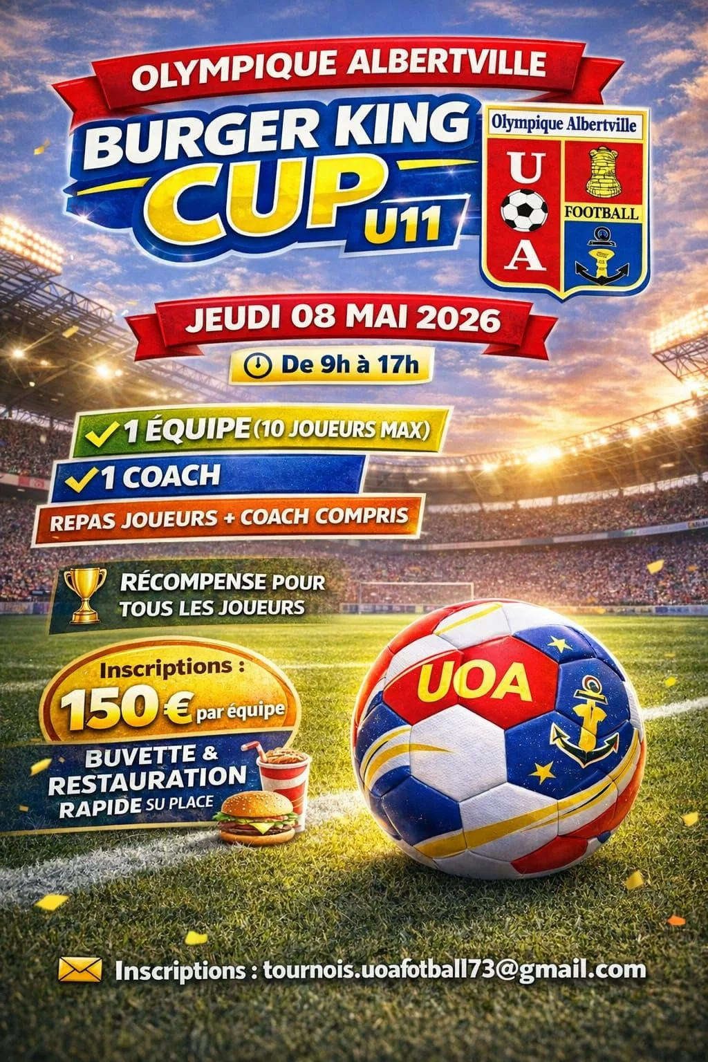 Nous avons le plaisir de lancer notre Tournoi Burger King Cup U11, à Albertville UOA.