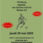 Tournoi de rentrée 2025 U10, U11, U12 & U13 d’Orchies Tournoi U11 du Royal Gosselies Sports Tournois U6, U8, U10 et U13 de l’Académie des Sports de la Sablières Tournoi en salle U8 du FC Mons – Mons-en-Barœul Tournoi U13 de l’ES Roncq Challenge Gilbert Boudaric Méditerrannée U10 et U11