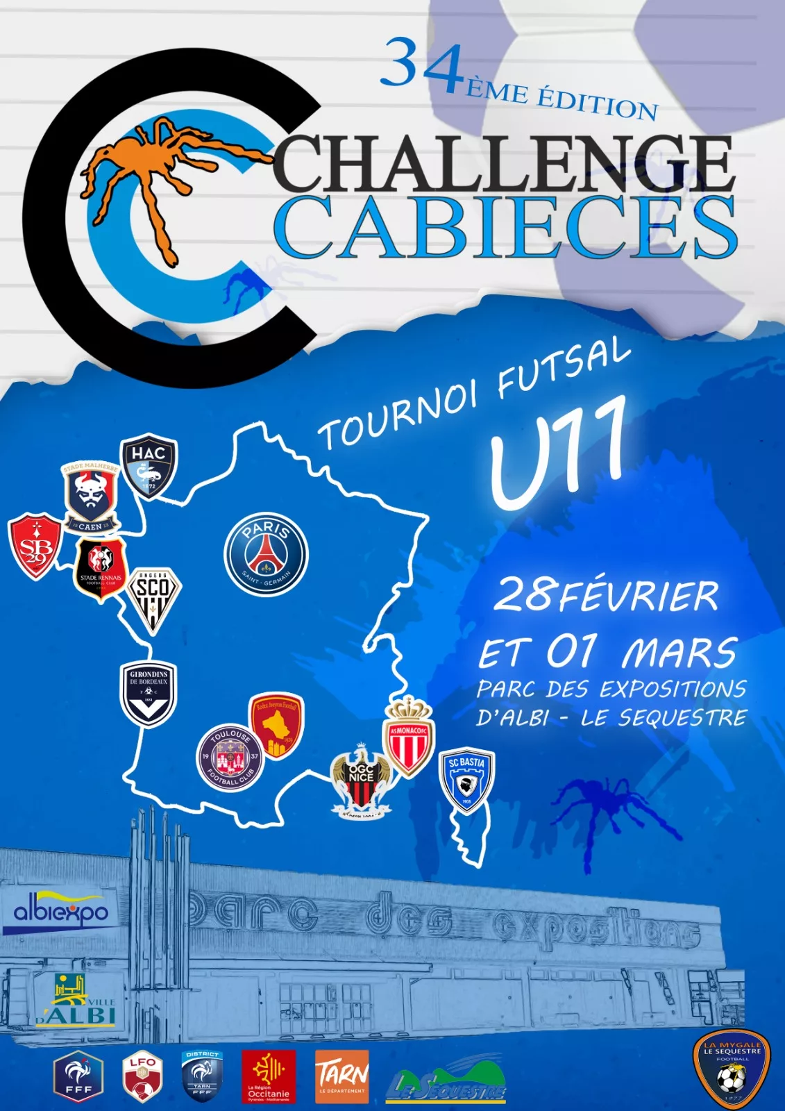Nous vous dévoilons l’affiche officielle de la 34ème édition du Challenge Cabièces avec les logos des 12 têtes d’affiche.