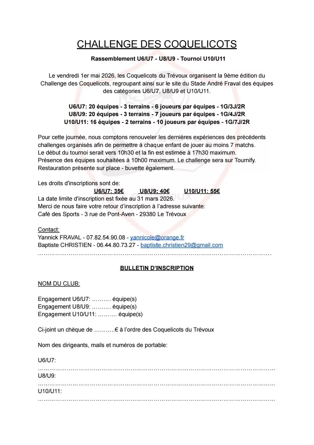 Challenge des coquelicots 2026 U7, U9 & U11 des coquelicots du Trévoux