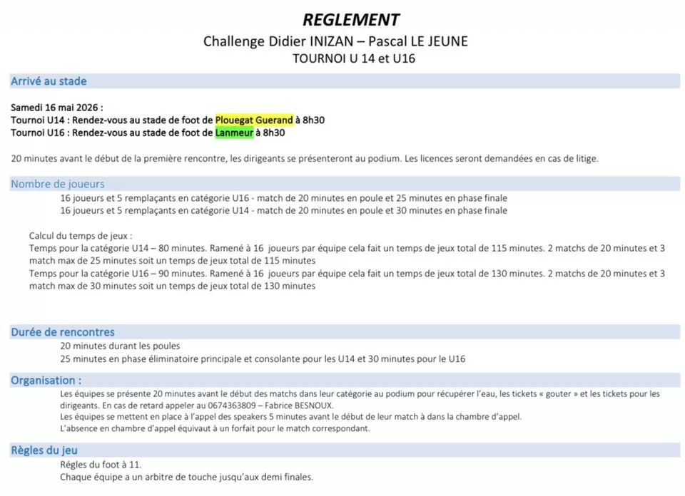 Challenge Inizan 2026 U14 & U16 de l’US LPG – Lanmeur