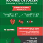 Tournoi JJ Condor U11 et U13 de l’US Vals-les-Bains ESSB Champion’s league U13 – Saint-Benoît Challenge Foot2coeur U11 et U13 Sainte-Gemmes-sur-Loire Juna Foot Outdoor Challenge U6, U7, U8, U9, U10, U11, U12 et U13 à 11 Salmchâteau Challenge Jean-Paul Prilière U7, U9 et U15F du FC Vertaizon Tournois de Soccer U11 et U13 du Pont-de-Dore Foot Pont-du-Château