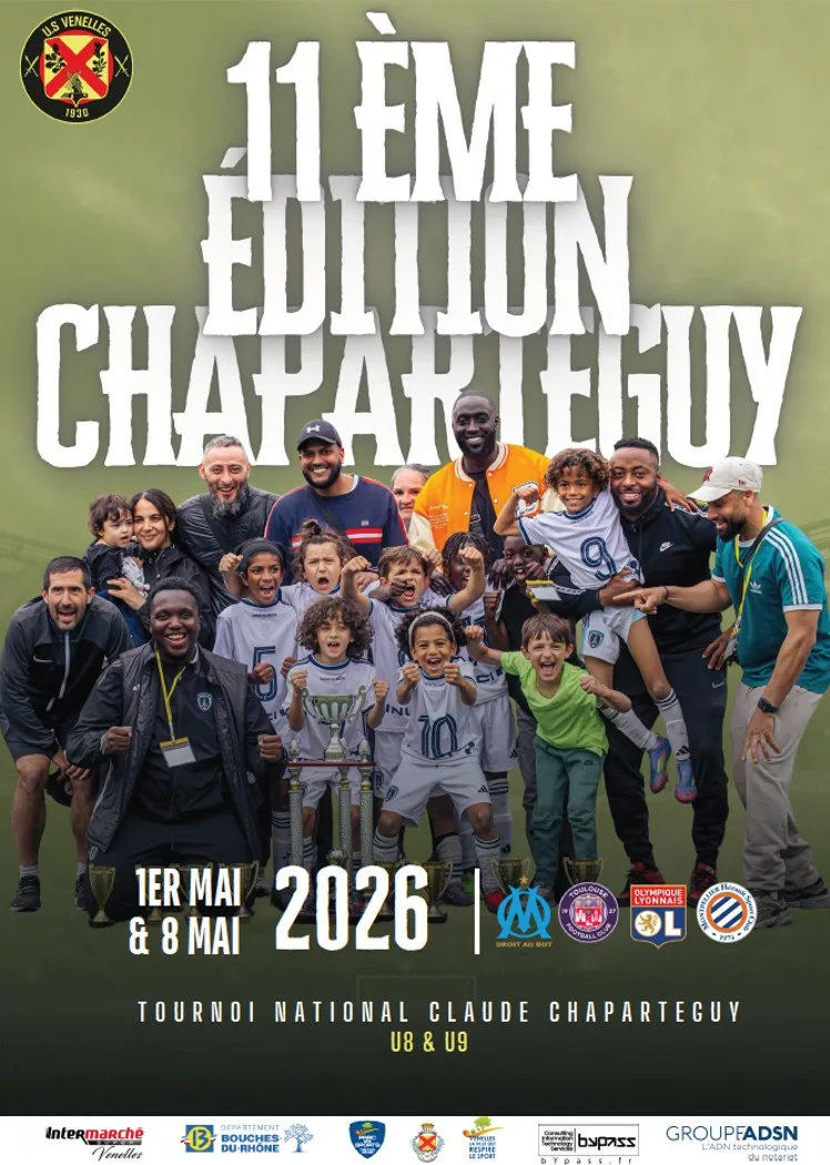 Les 1er et 8 mai 2025, l’US Venelles Football organisera une nouvelle édition du 𝑪𝒉𝒂𝒍𝒍𝒆𝒏𝒈𝒆 𝑵𝒂𝒕𝒊𝒐𝒏𝒂𝒍 𝑪𝒍𝒂𝒖𝒅𝒆 𝑪𝒉𝒂𝒑𝒂𝒓𝒕𝒆𝒈𝒖𝒚, son tournoi national dédié aux catégories U8 et U9