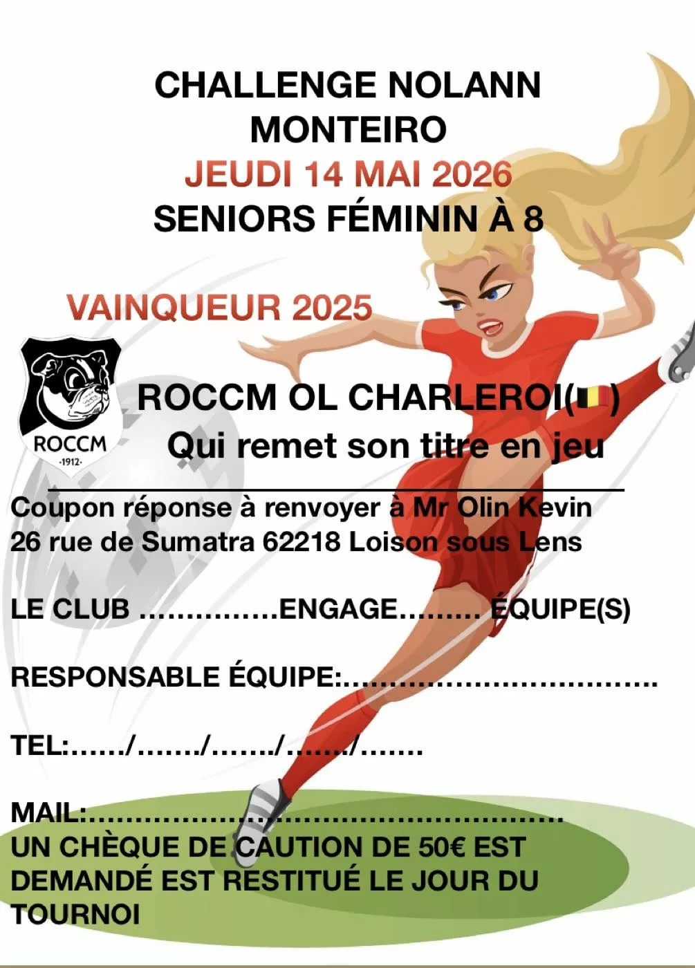 Nous organisons la 5eme édition du challenge Nolann Monteiro en Seniors Féminines le JEUDI 14 MAI 2026