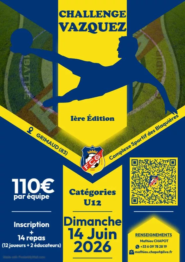 Le Football Club de Grimaud (FCG) et ses éducateurs ont le plaisir de vous annoncer l’ouverture des inscriptions pour la Ière édition du Challenge Vazquez :
