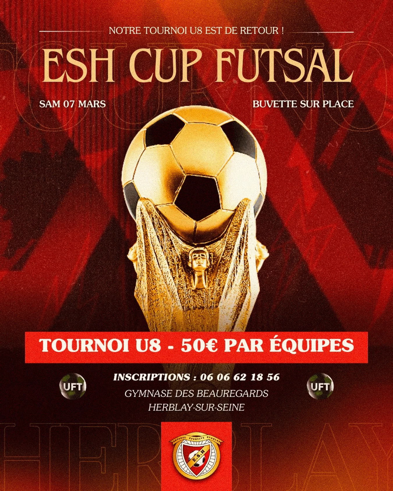 Le samedi 7 mars, l’ES Herblay organise l’𝐄𝐒𝐇 𝐅𝐮𝐭𝐬𝐚𝐥 𝐂𝐮𝐩 𝐔𝟖, un tournoi régional réunissant 16 équipes prêtes à en découdre !
