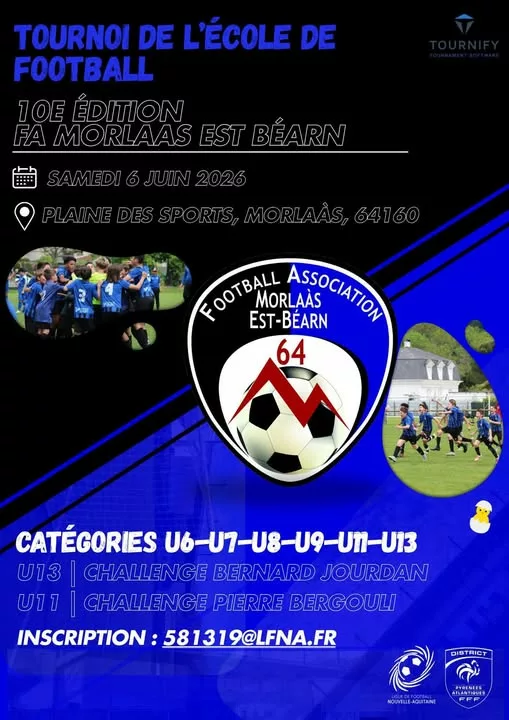 Le FA Morlaàs Est Béarn vous donne rendez- vous pour la 10e édition de son tournoi de fin de saison, qui se tiendra le samedi 6 juin 2026 à 5mn de Pau(64) !