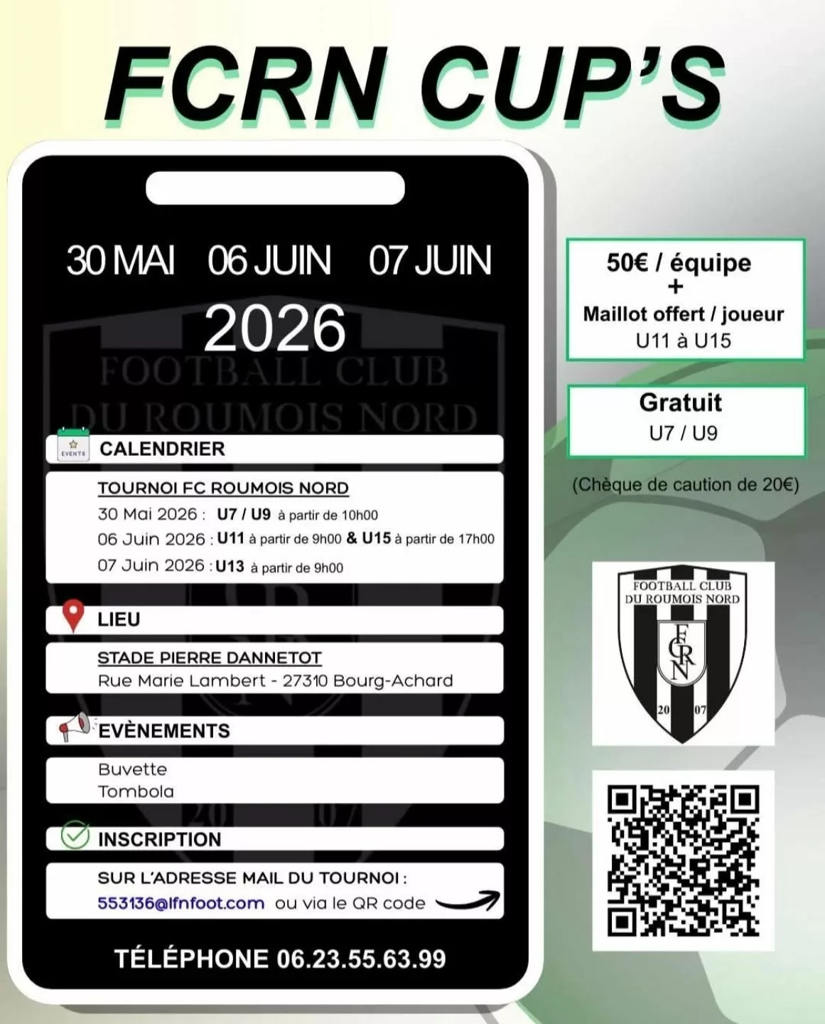 Le FC ROUMOIS NORD (27) présente son tournoi de jeunes qui se tiendra aux dates suivantes :