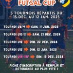 Tournois U11 et U16 de l’Olympique Le Hamel Tournoi Futsal U18F du Joliot Futsal Dammarie-les-Lys Futsal Cup U12 de l’US Lamorlaye Futsal Cup U11 de l’US Lamorlaye Futsal Cup U9 de l’US Lamorlaye Challenge Ti’Neuc U11 et U13 Saint-Domineuc