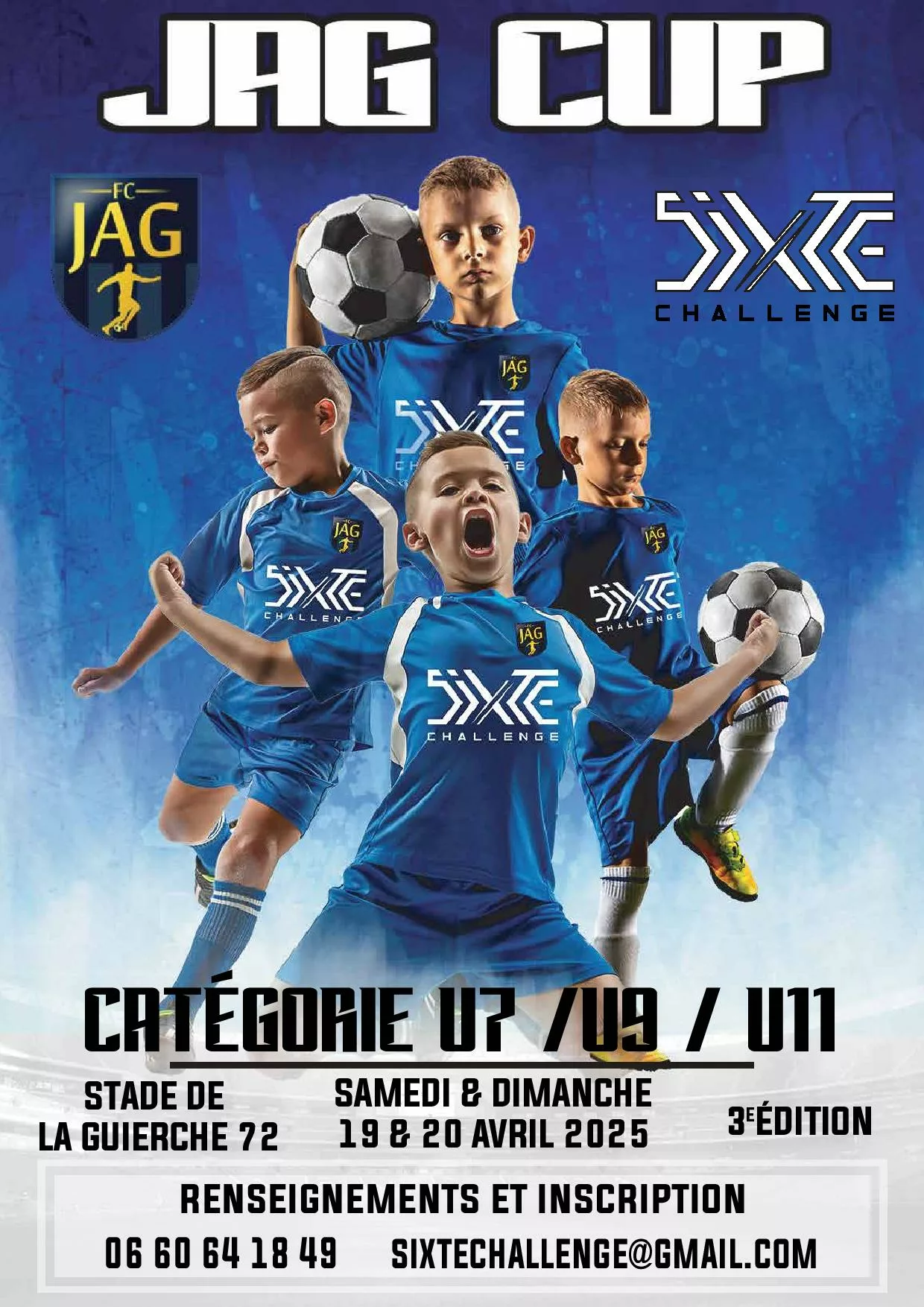 Bienvenue à la 3e édition de la JAG CUP U7 – U9 – U11 organisé par le FC JOUE L’ABBÉ – LA GUIERCHE en partenariat avec l’organisateur de tournois SIXTE CHALLENGE