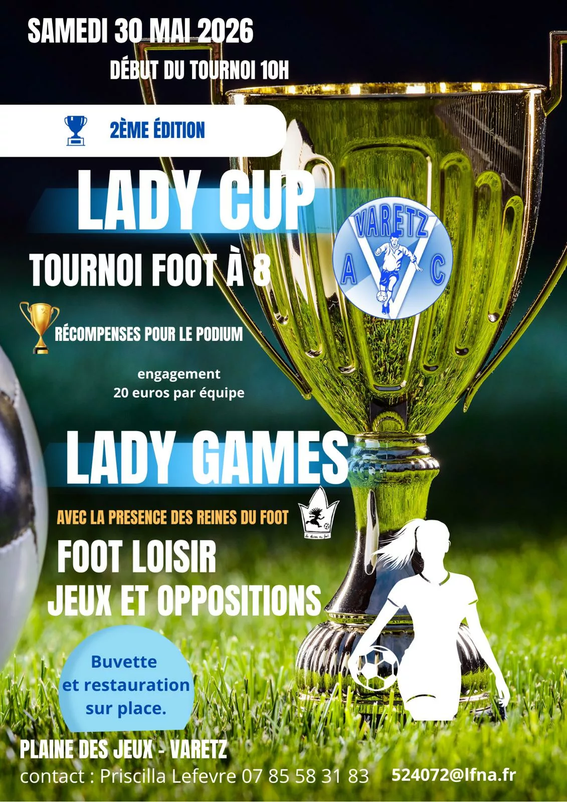 La Lady Cup revient avec un tournoi foot à 8. Engagement : 20€ par équipe. Des récompenses attendent les équipes du podium. ![]()