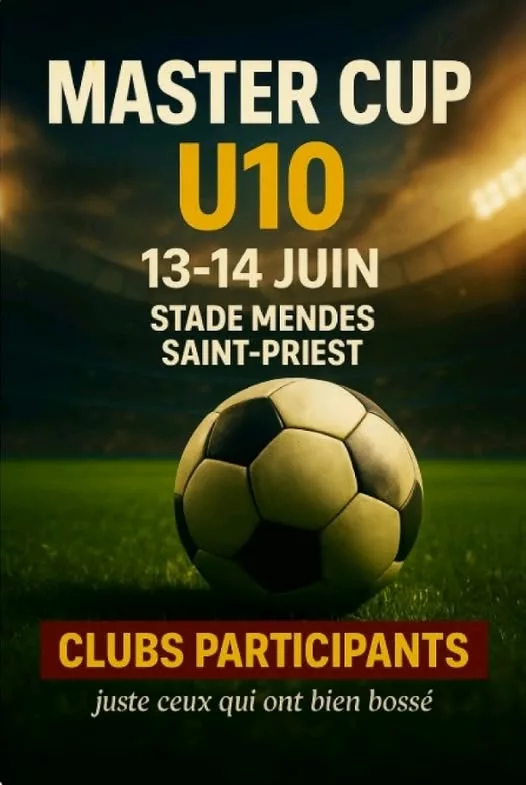 C’est dans cet esprit que nous avons le plaisir de vous inviter à la Finale Master Cup U10, un tournoi d’exception réunissant les équipes qui se sont distinguées par leur niveau, leur identité de jeu et la qualité de leur formation.
