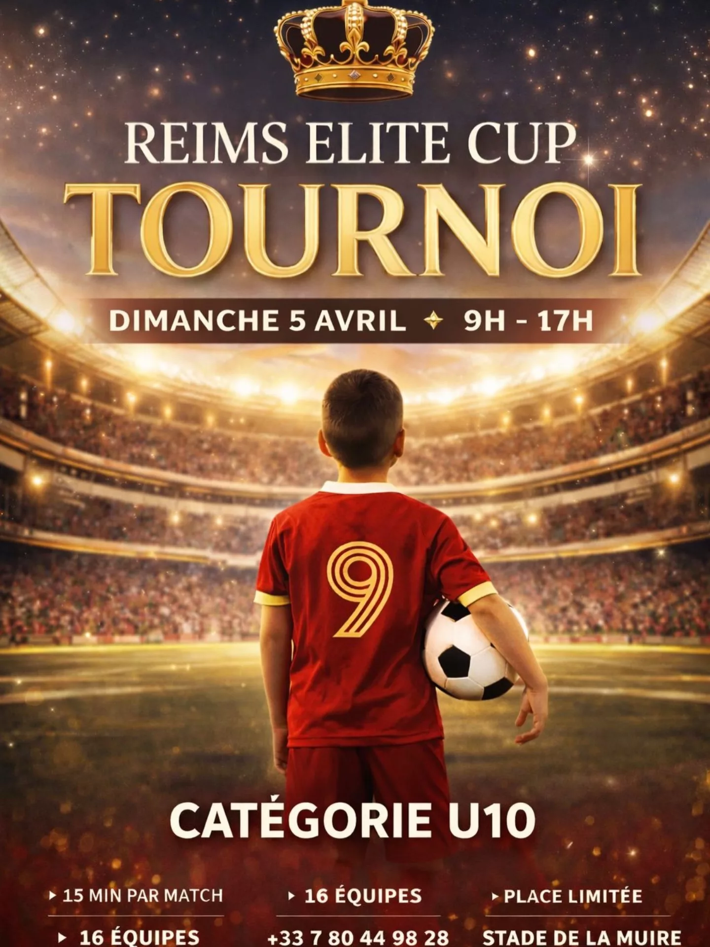Une belle journée de football attend les jeunes talents avec la Reims Elite Cup ! Rendez-vous le dimanche 5 avril au Stade de la Muire à Reims pour un tournoi U10 réunissant 16 équipes dans une ambiance compétitive et conviviale ![]()