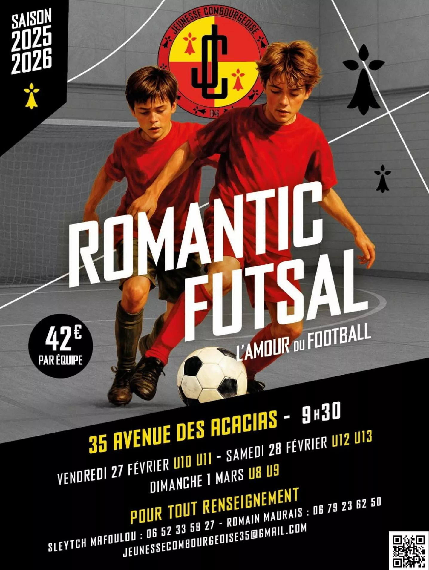 La Jeunesse Combourgeoise est ravie de vous annoncer le lancement de son tournoi indoor : le ROMANTIC FUTSAL – L’Amour du Football !