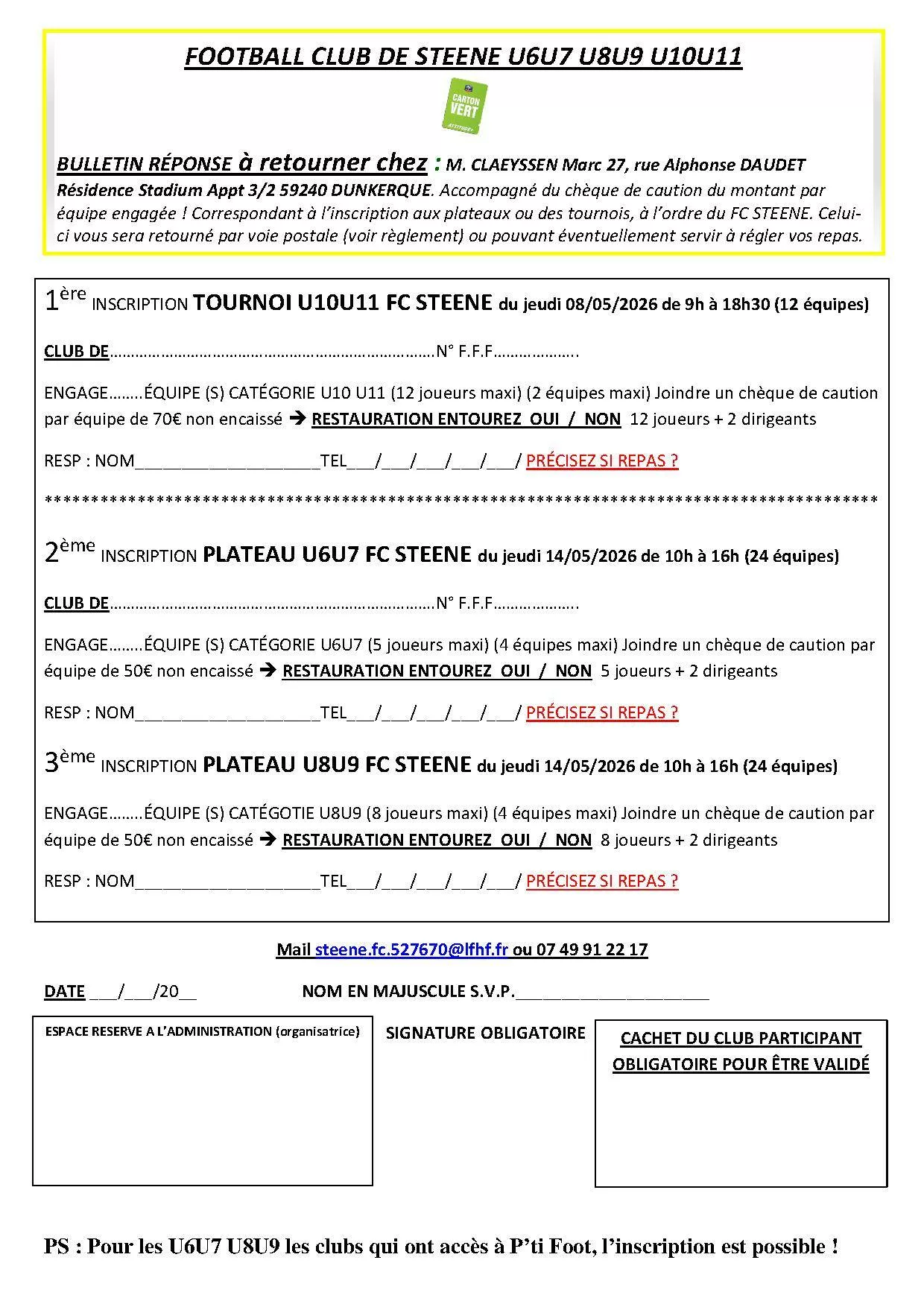 Tournois de pentecôte 2026 U7 & U9 de l’US Bray-Dunes