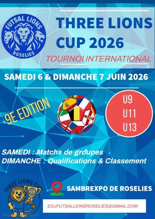 Three Lions Cup 2026 U9, U11 & U13 du Futsal Lions Roselies