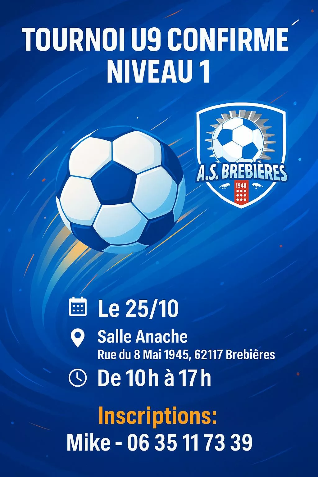Octobre Rose 2025 U11F & Seniors F – Villeneuve-d’Ascq Tournoi Indoor 2025 U7 & U9 de l’ASPTT Arras Football Maxi Plateau 2026 U6, U7, U8 & U9 de l’ES Guînes Tournoi de Noël 2025 U11 de l’ES Guînes Tournois U7, U9 et U11 de l’US Changé Tournois U7, U9 et U13F de l’AC Anvaing
