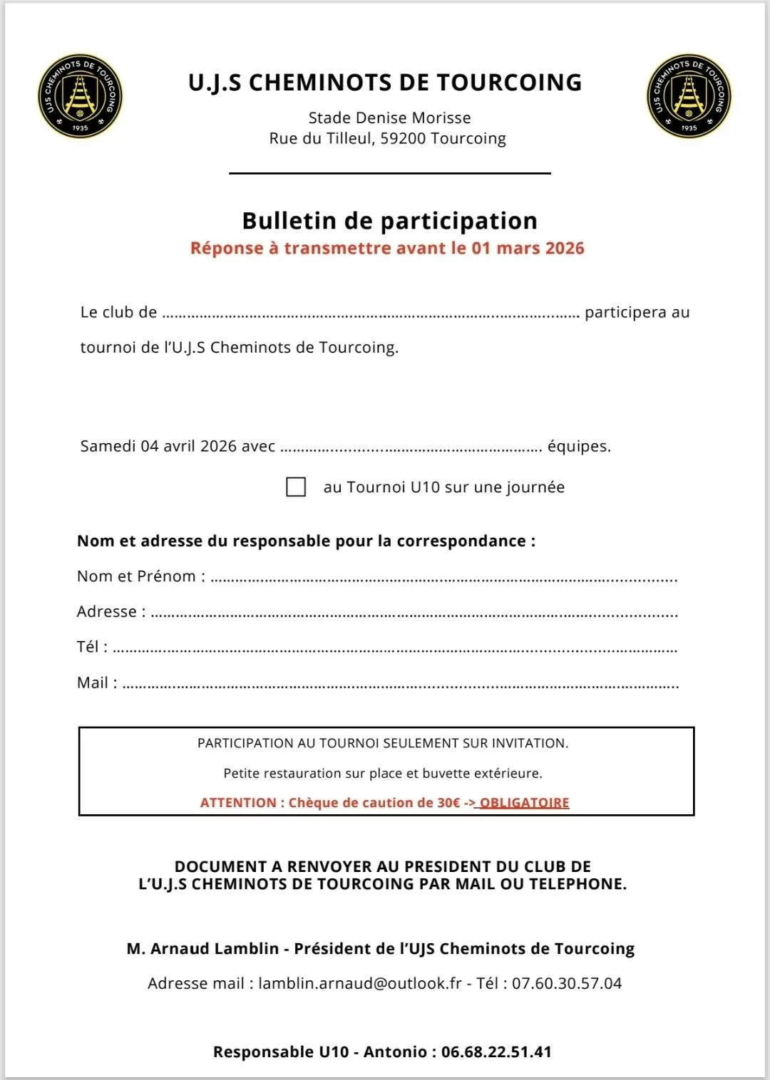 Sur les feuilles d’inscriptions, pour les tournois de U10 à U13 tout est indiqué pour contacter les coachs et s’inscrire