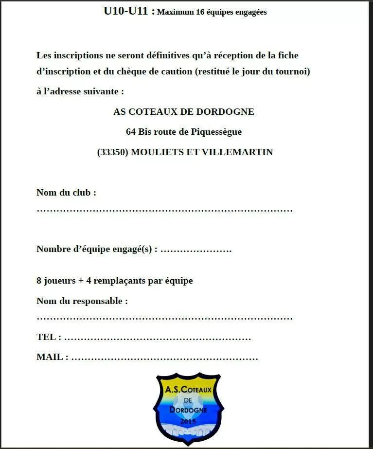 Tournoi 2026 U11 de l’AS Coteauxde Dordogne – Saint-Pey-de-Castets