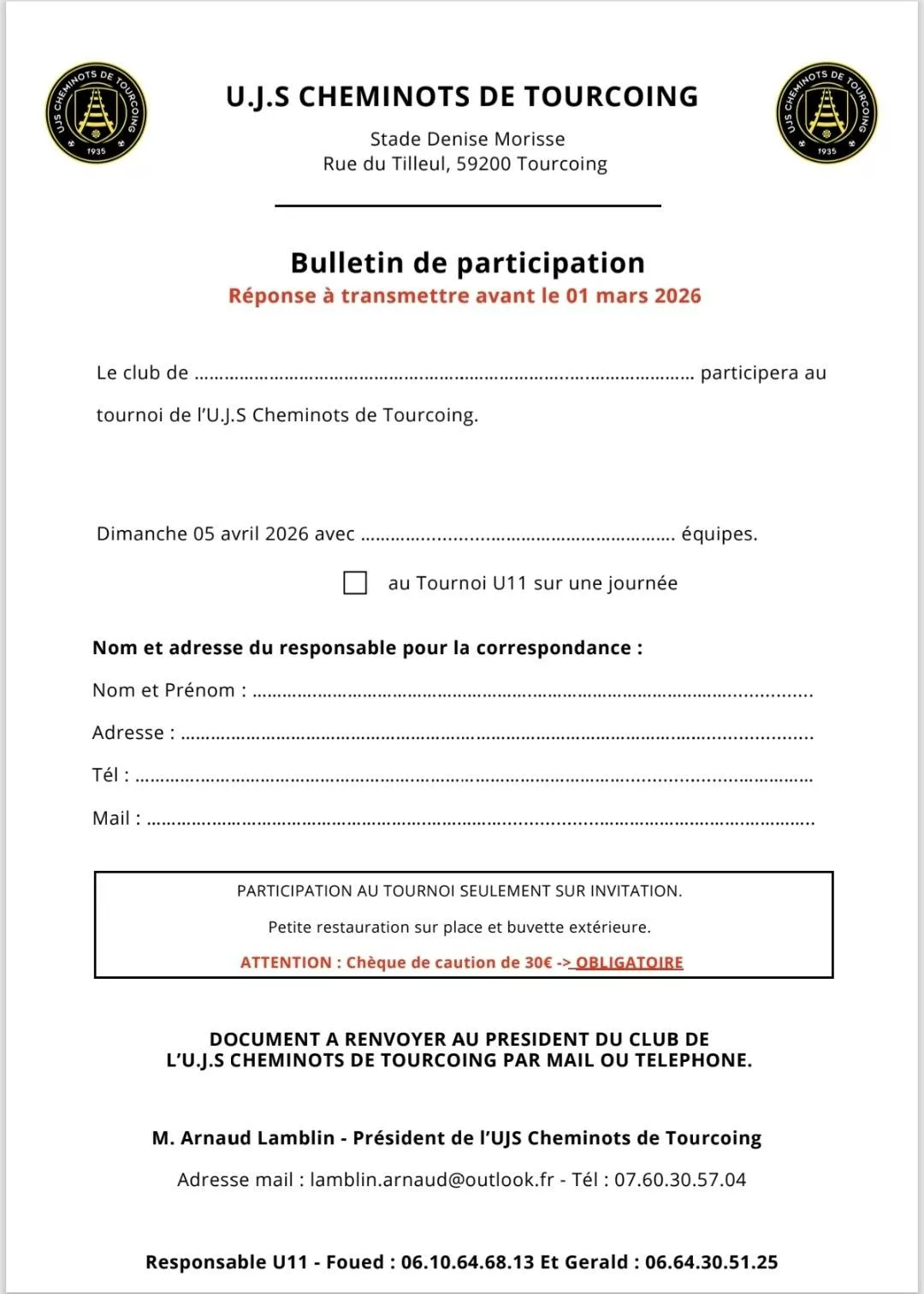 Sur les feuilles d’inscriptions, pour les tournois de U10 à U13 tout est indiqué pour contacter les coachs et s’inscrire
