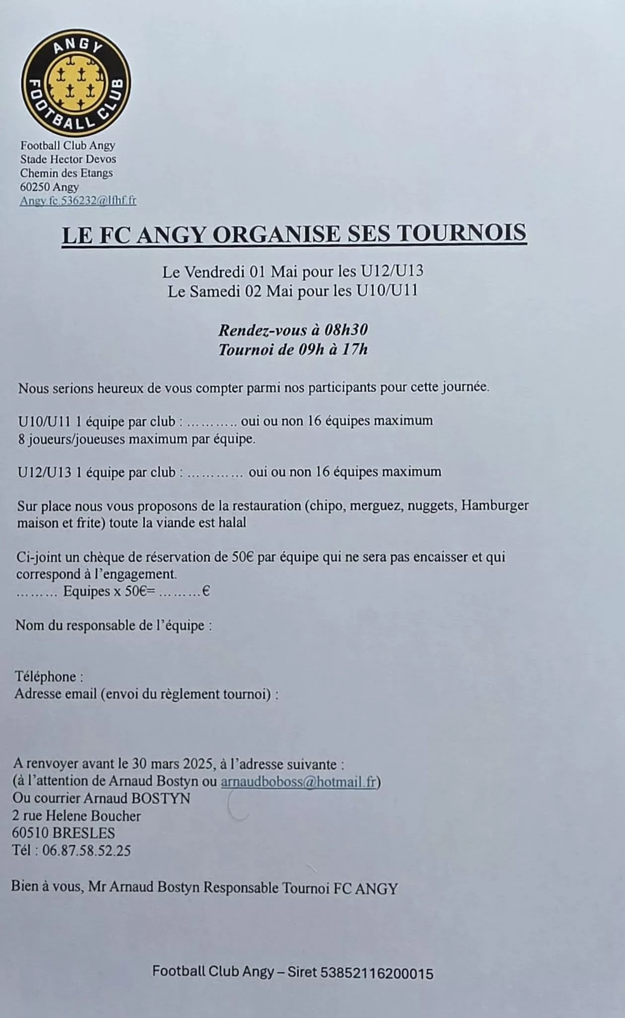 Tournoi 2026 U13 du FC Angy