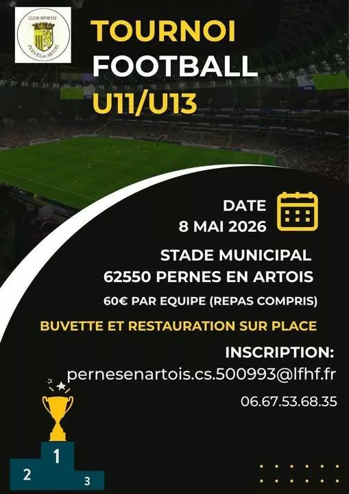 Le C.S. Pernes organise son traditionnel tournoi U10-U11 et U12-U13 le vendredi 8 mai. N’hésitez pas à nous contacter.