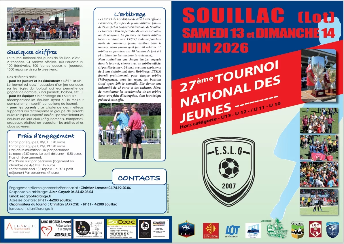 L’Entente Souillac Lachapelle Gignac (46) a le plaisir de vous inviter à son 26ème tournoi national pour les catégories U10/U11 et U12/U13. Un événement incontournable pour tous les passionnés du ballon rond, à la fin de cette saison sportive !