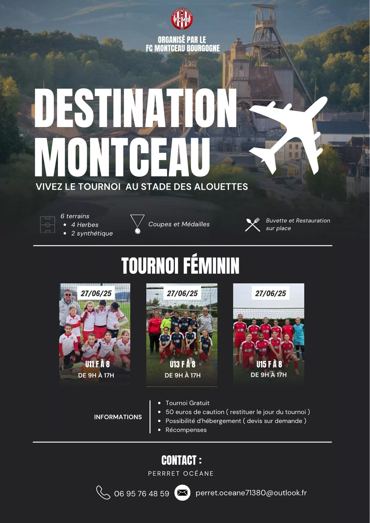Nous avons le plaisir de vous inviter à participer à nos tournois Féminin organisée par le Football Club Montceau Bourgogne qui auront lieux :