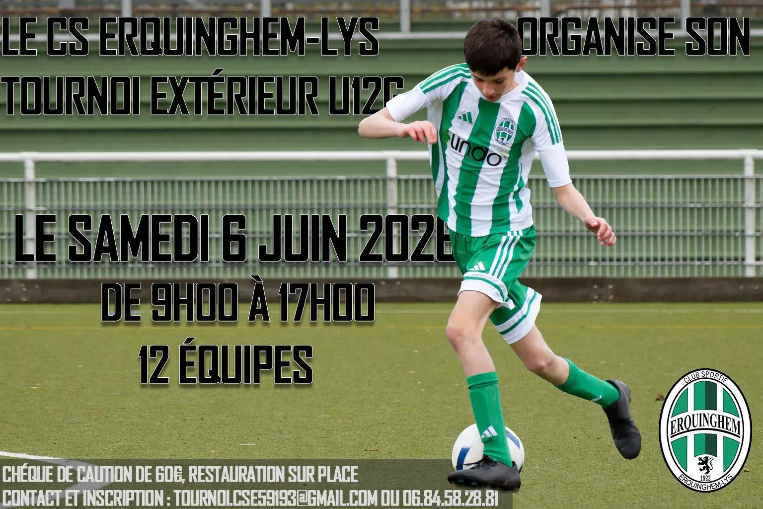 Bonjour à tous CS Erquinghem Lys organise son premier tournoi U12 le 6 Juin…