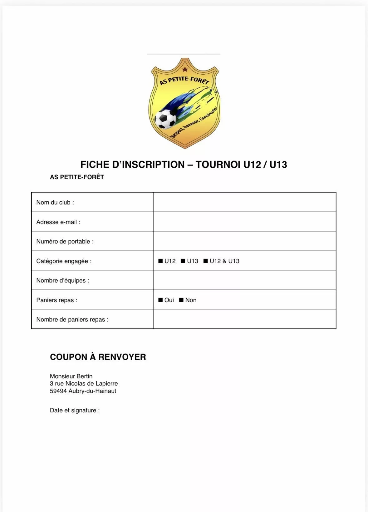 Tournoi 2026 U12 & U13 de l’AS Petite-Forêt – Aubry-du-Hainaut