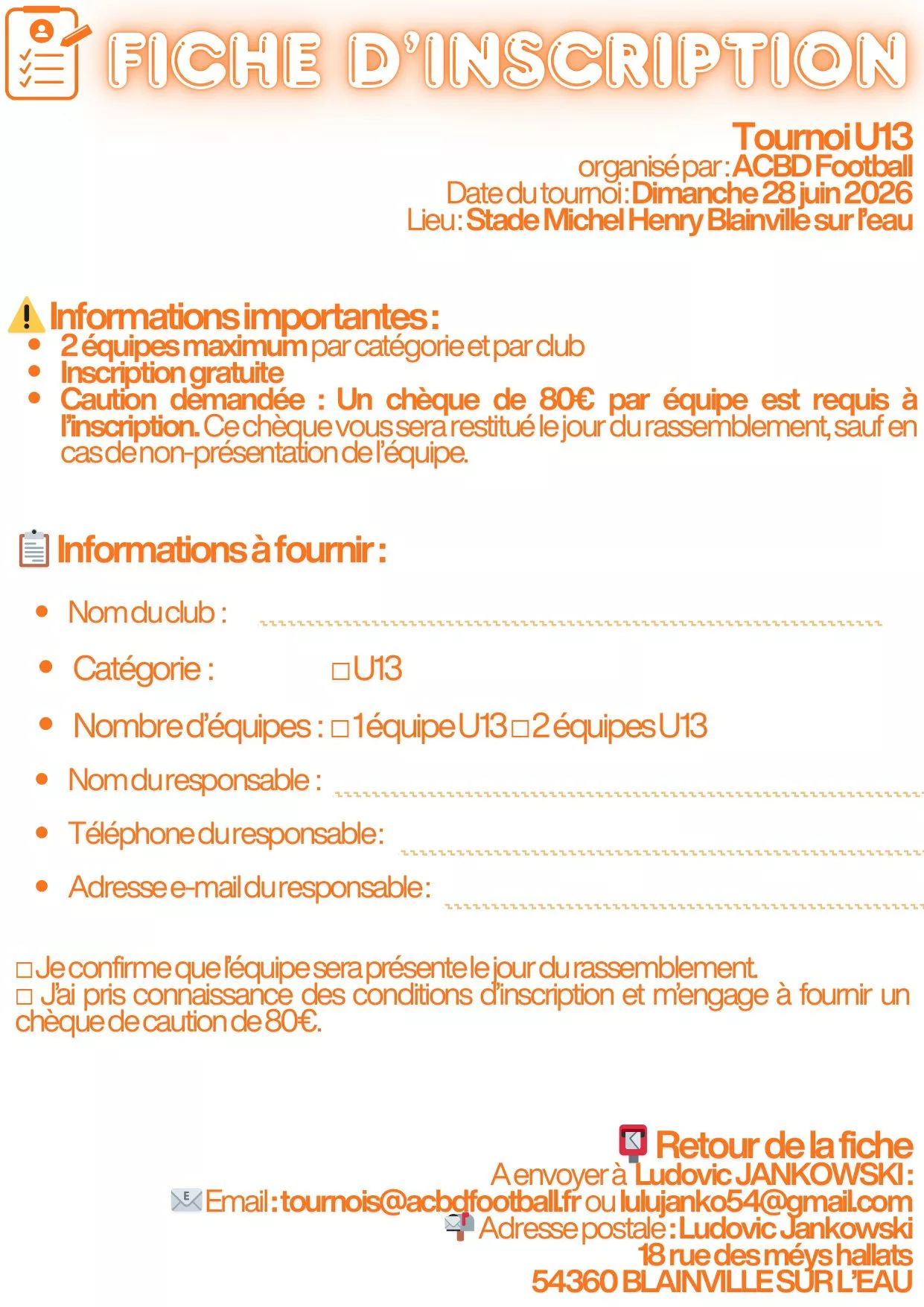 Tournoi 2026 U13 de l’ACBD Football – Blainville-sur-l’Eau