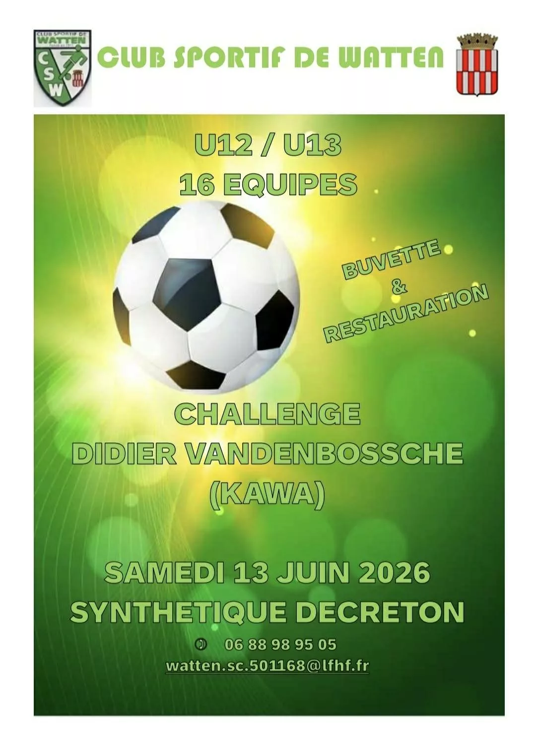 Venez à notre Tournoi U10U11 du CS Watten pour remporter le trophée « Arthur Ducher » le dimanche 14 juin 2026, Niv 3/4
