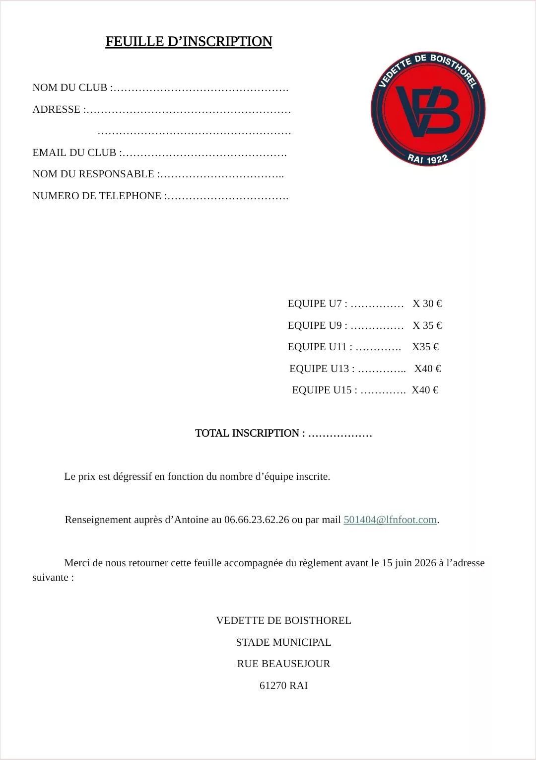 Tournoi 2026 U13 & U15 du Vedette de Boisthorel – Rai
