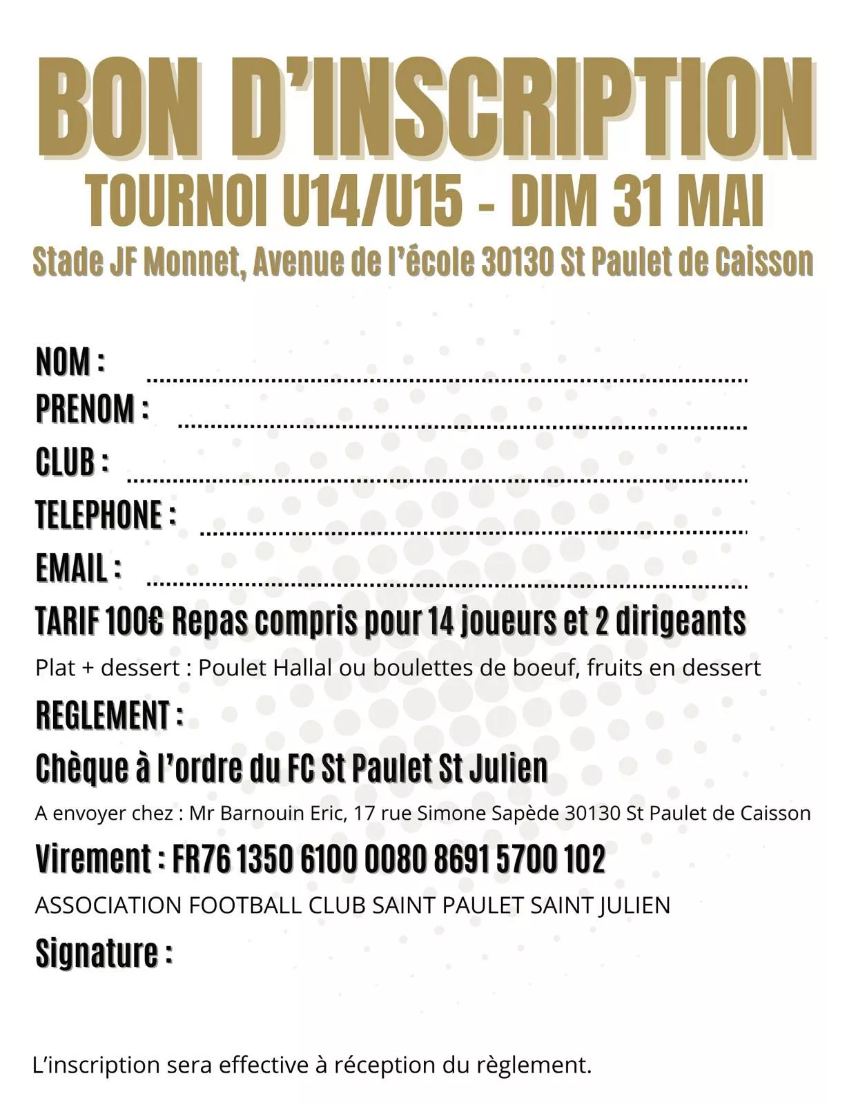 Tournoi 2026 U15 du SP Saint Paulet Saint Julien – Saint-Paulet-de-Caisson