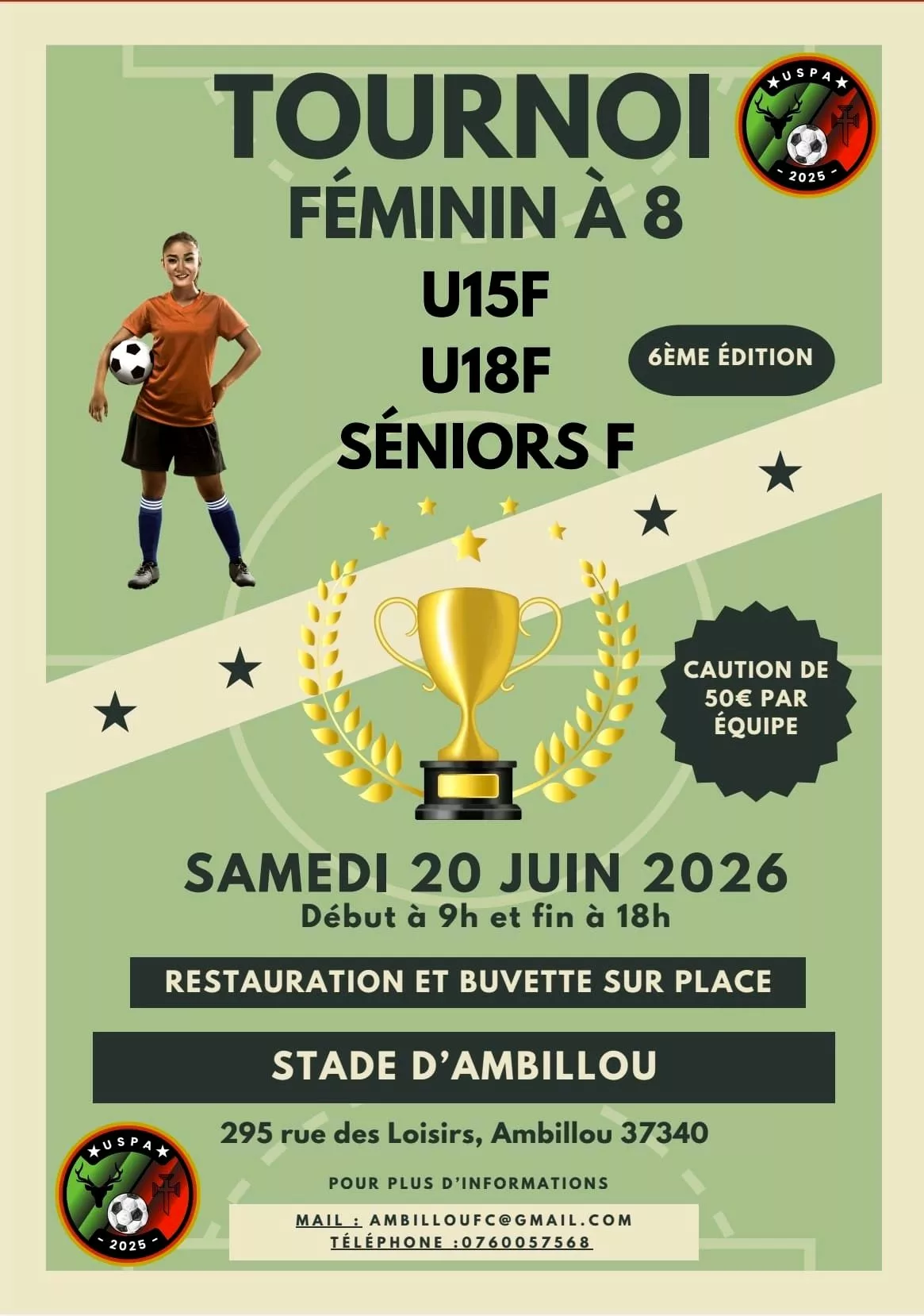 Notre 6ᵉ édition du tournoi féminin s’annonce exceptionnelle et nous aurons à cœur de mettre le football féminin à l’honneur comme il se doit ![]()