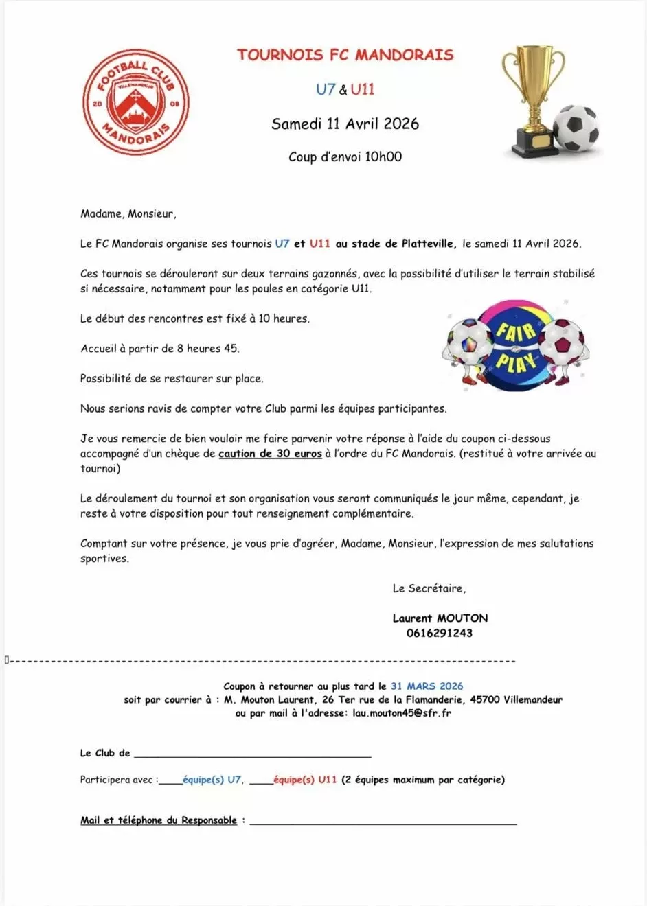 Tournoi 2026 U7 & U11 du FC Mandorais – Villemandeur