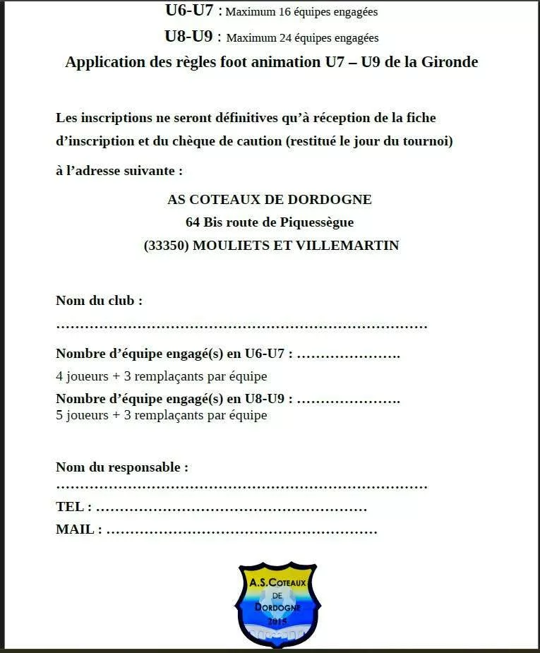 Tournoi 2026 U7 & U9 de l’AS Coteauxde Dordogne – Saint-Pey-de-Castets