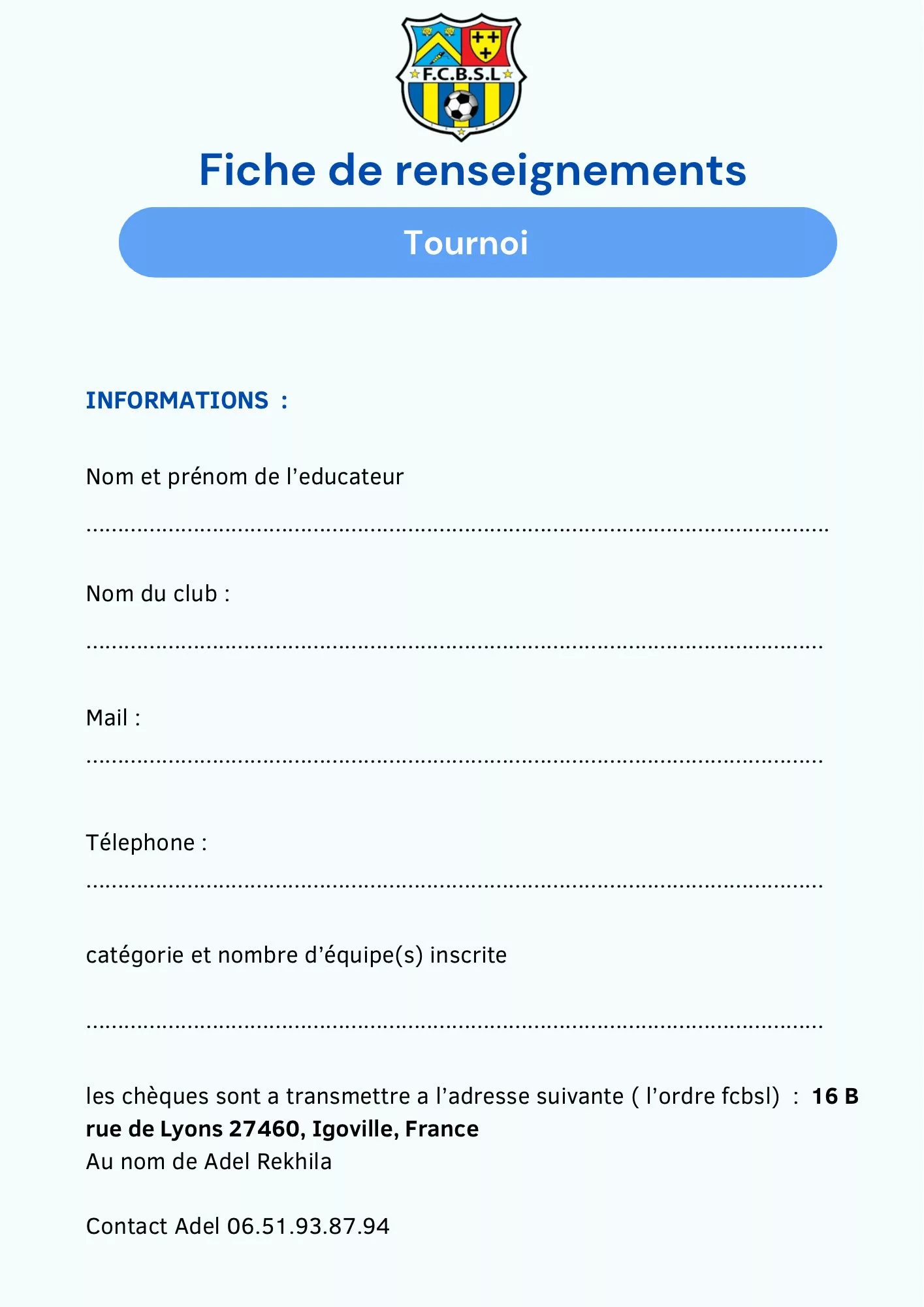 Tournoi U13 : 40 € par équipe