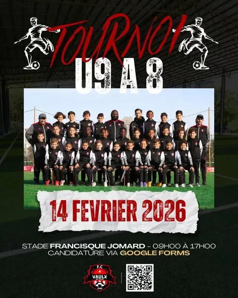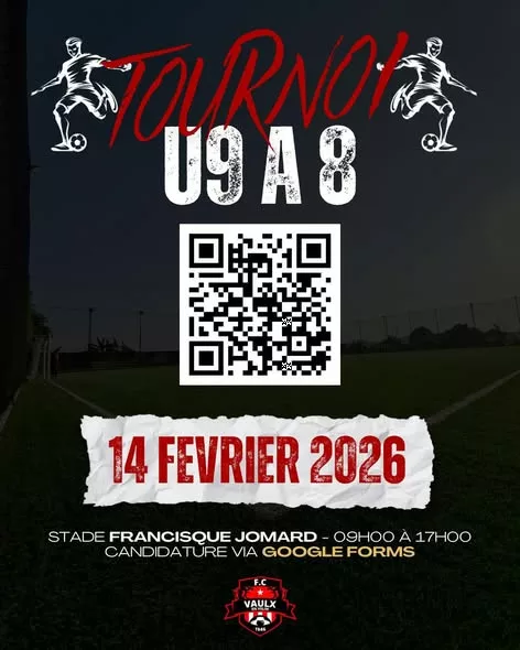 il reste encore 4 places de disponible pour le tournoi U9 à 8 vs 8 du FC Vaulx en Velin le samedi 14 fevrier.