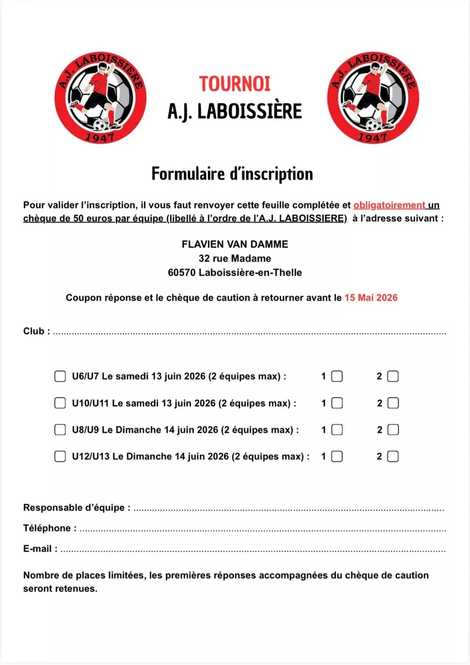Tournoi 2026 U9 & U13 de l’AJ Laboissière – Laboissière-en-Thelle