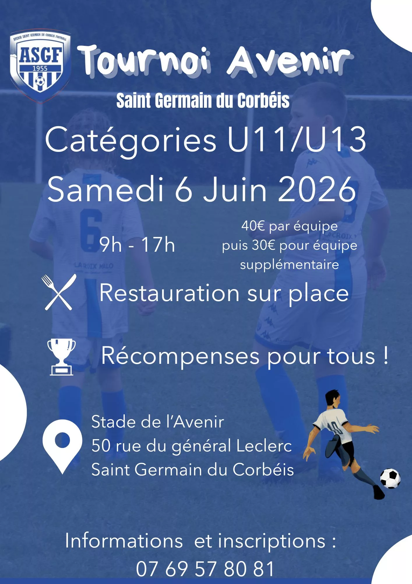 Le club de Saint-Germain-du-Corbeis organise son tournoi de football U11 et U13 le samedi 6 juin 2026.