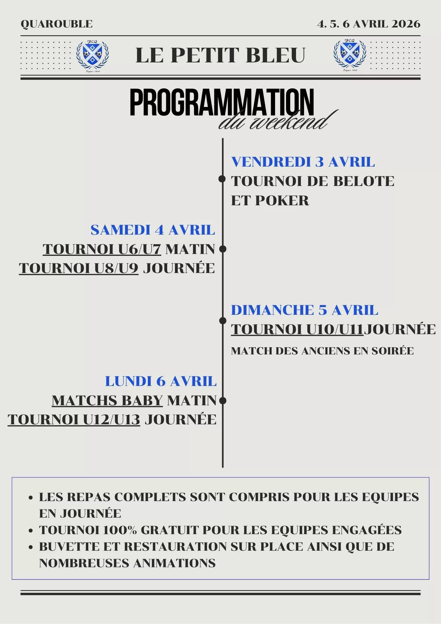C’est reparti pour notre grand tournoi annuel de Pâques, un rendez-vous incontournable du football à Quarouble
