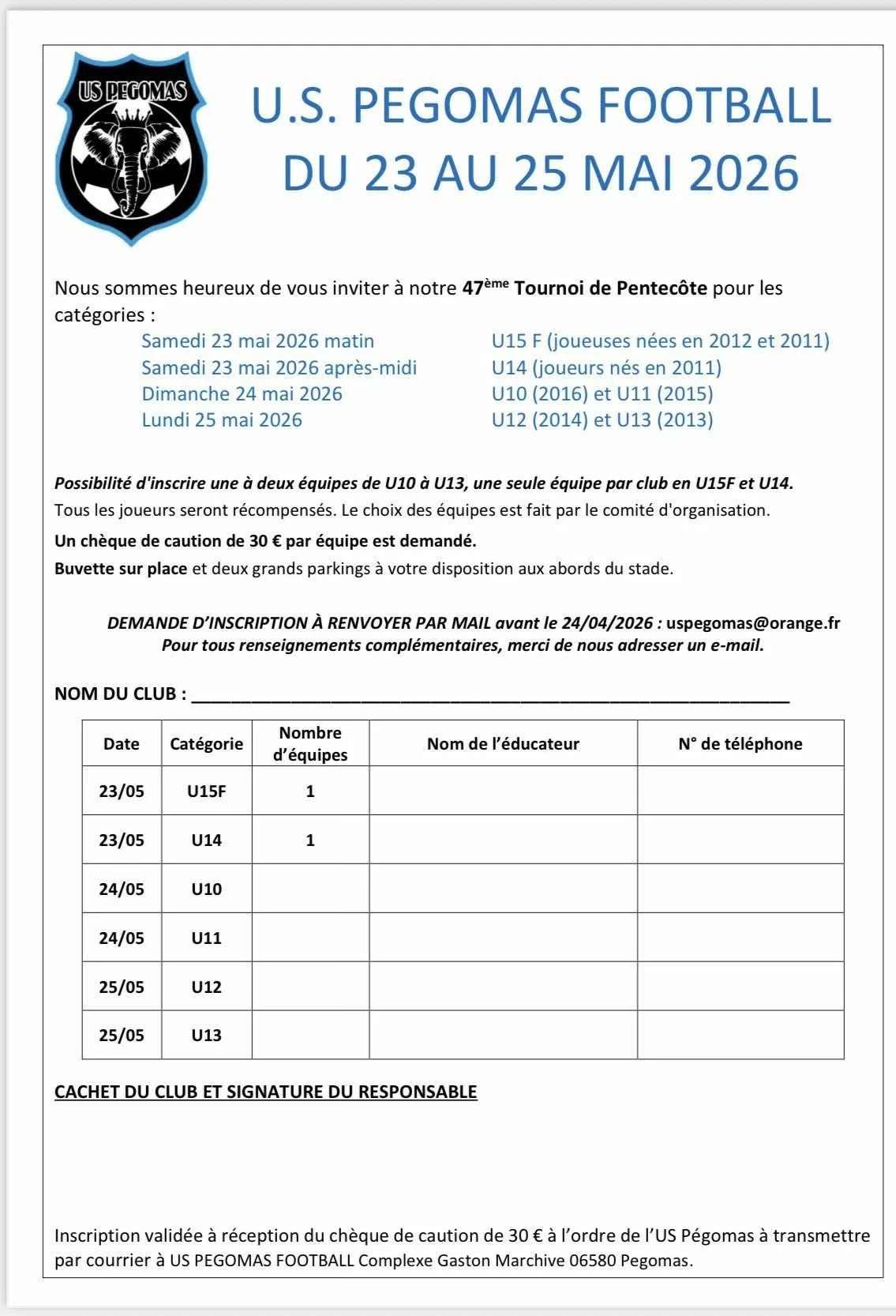 Tournoi de Pentecôte 2026 U10 & U11 – Pégomas
