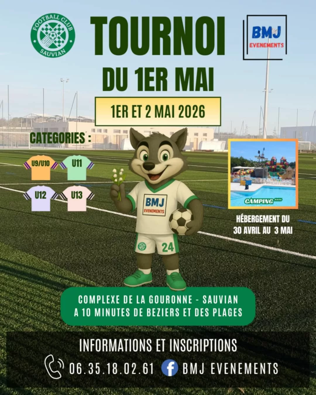 Tournoi de Pentecôte 2026 U10, U11, U12 & U13 – Boujan-sur-Libron Kid Cup Castriote 2025 U10, U11, U12 & U13 de l’Avenir Castriote – Castries Tournoi de Pâques 2026 U10, U11, U12 & U13 du FC Sauvian Challlenges MMA & Leclerc 2026 U15 & U17 de l’US Coutras Tournoi de rentrée 2025 U10, U9, U10 & U11 du FC Chusclan Laudun l’Ardoise – Chusclan Challenge Moussot