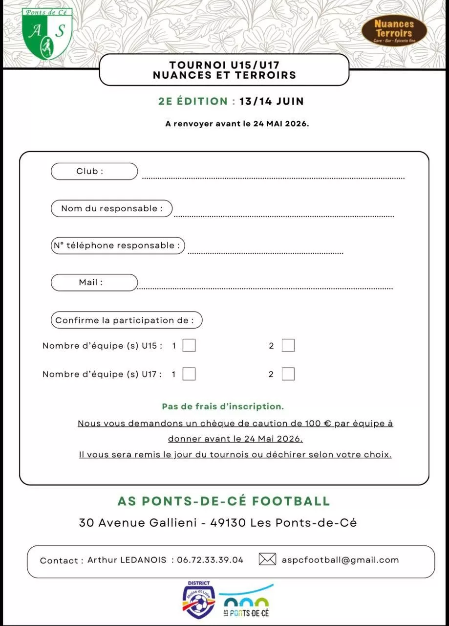 Tournoi du Terroir 2026 U15 de l’AS Ponts-de-Cé Football – Les Ponts-de-Cé