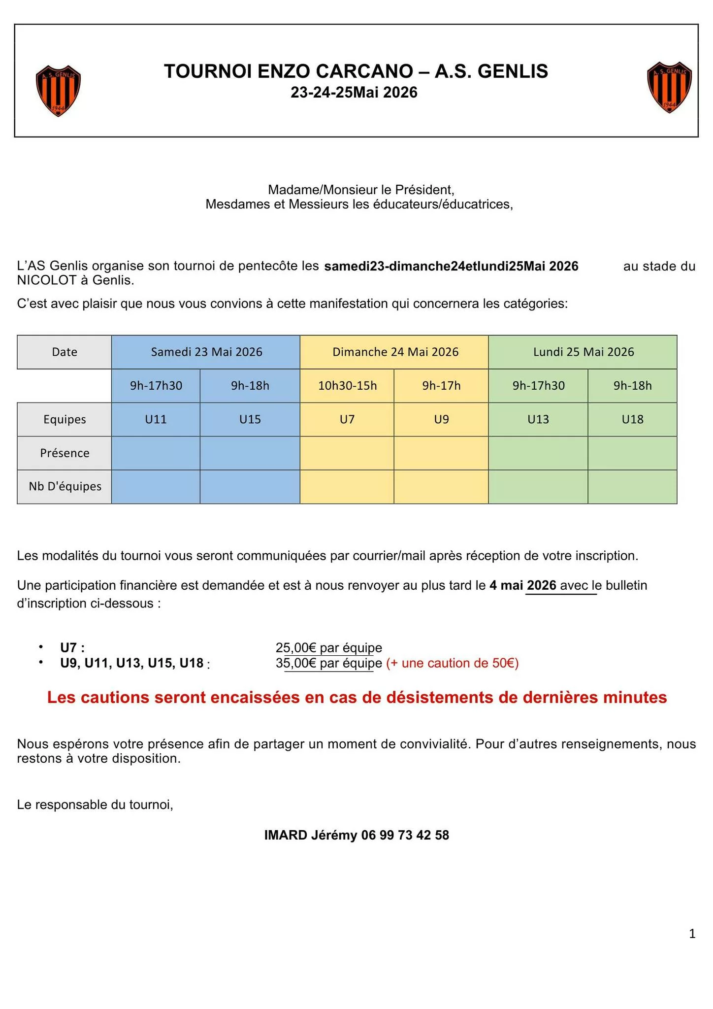 Tournoi Enzo Carcano 2026 U7 & U9 – Genlis