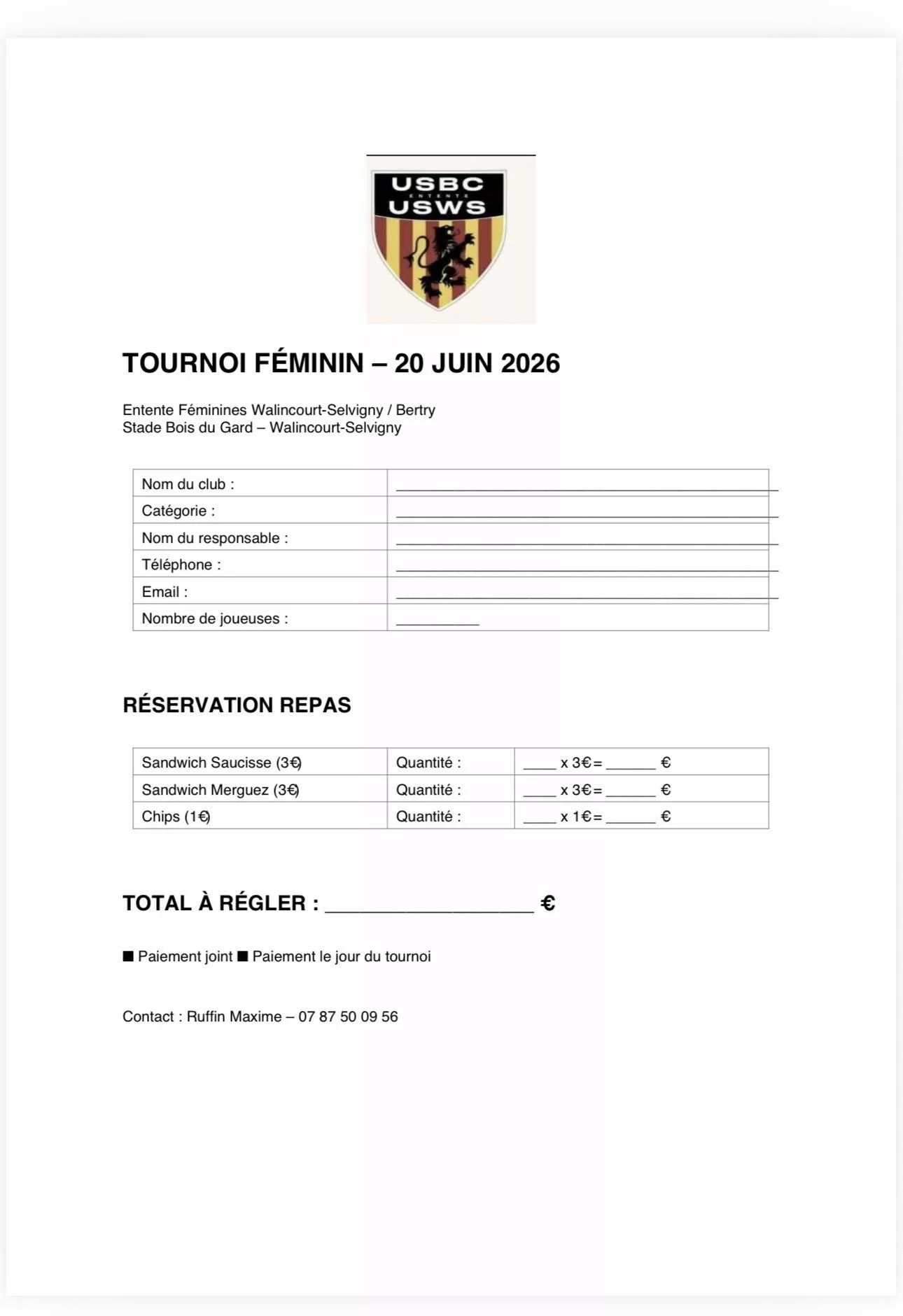 Tournoi Féminin 2026 Seniors F de l’Entente Bertry-Clary Walincourt-Selvigny – Walincourt-Selvigny