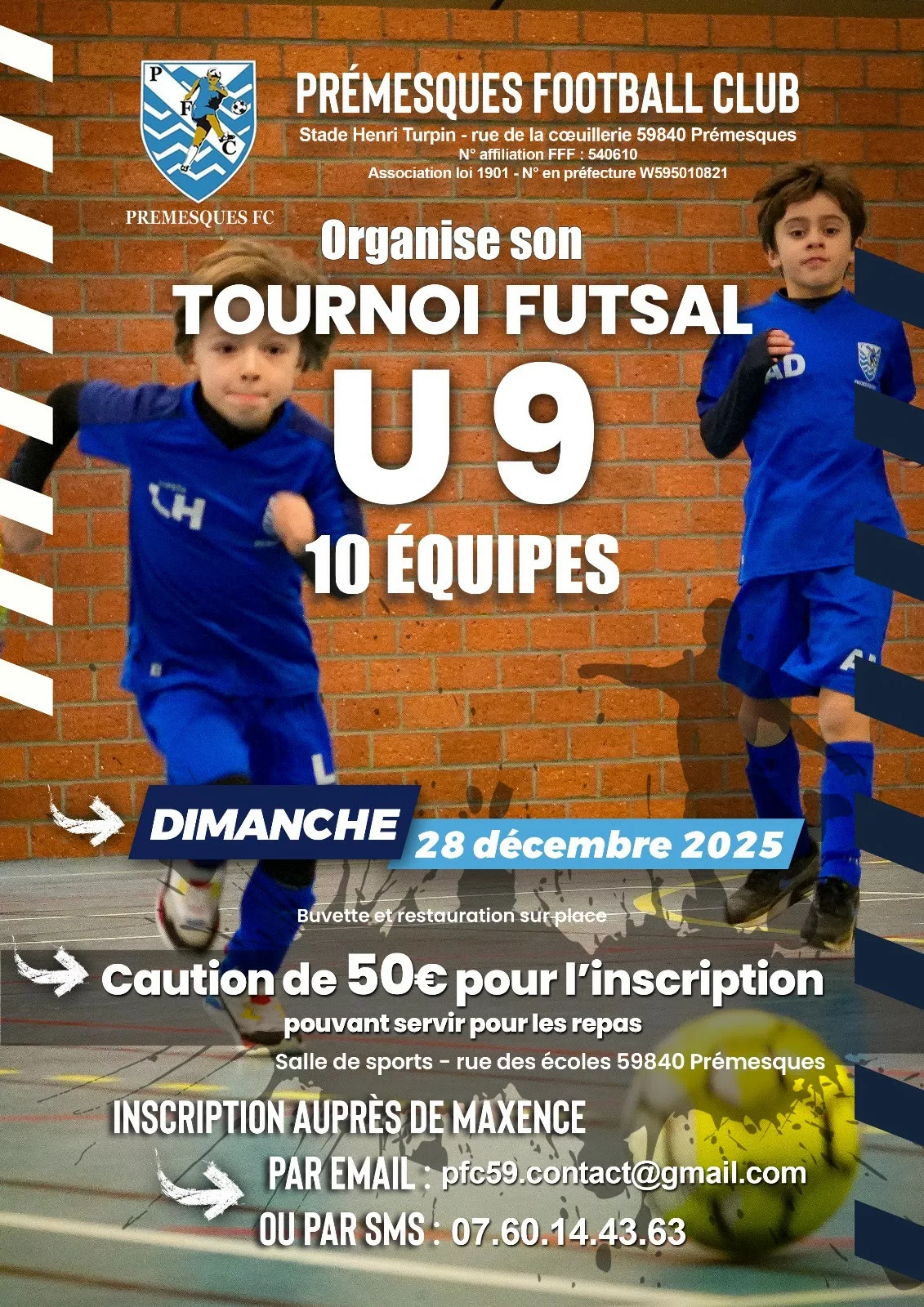 Le FC Premesques organise sont traditionnel tournoi futsal le dimanche 28 décembre 2025 pour la catégorie U9.